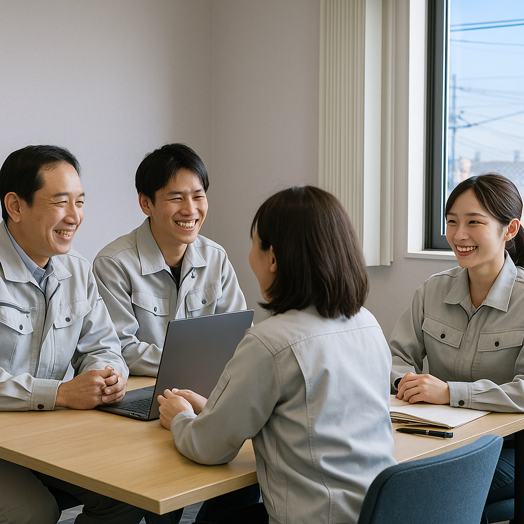 また、社内の雰囲気はとてもフラット。年齢や役職に関係なく、気軽に相談や意見交換ができる環境があります。新人でも現場の改善提案をどんどん出せる風通しの良さが自慢です。